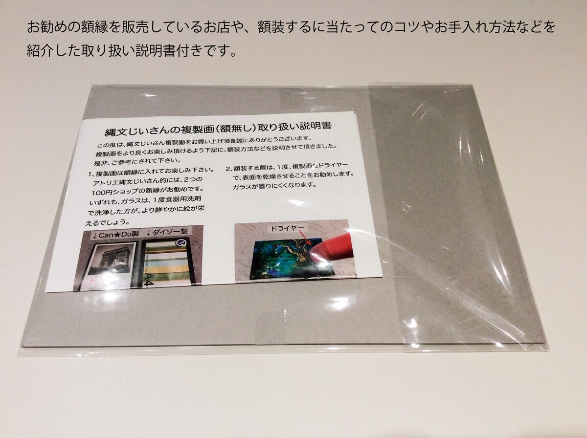 お勧めの額縁を販売しているお店や、お手入れ方法を記載した取り扱い説明書を同封致しますのでご安心下さい。